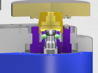 Le plot de travail est maintenu par un système de ­verrouillage à billes.